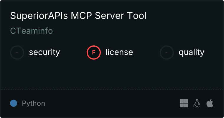 curl -X GET 'https://glama.ai/api/mcp/v1/servers/CTeaminfo/mcp-superiorapis'