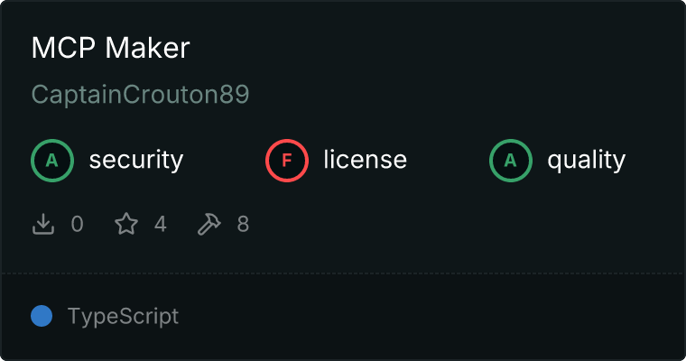 curl -X GET 'https://glama.ai/api/mcp/v1/servers/CaptainCrouton89/mcp-maker'