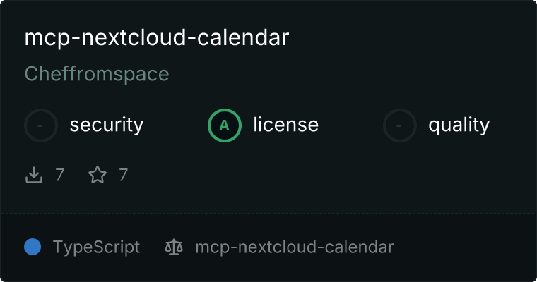curl -X GET 'https://glama.ai/api/mcp/v1/servers/Cheffromspace/mcp-nextcloud-calendar'