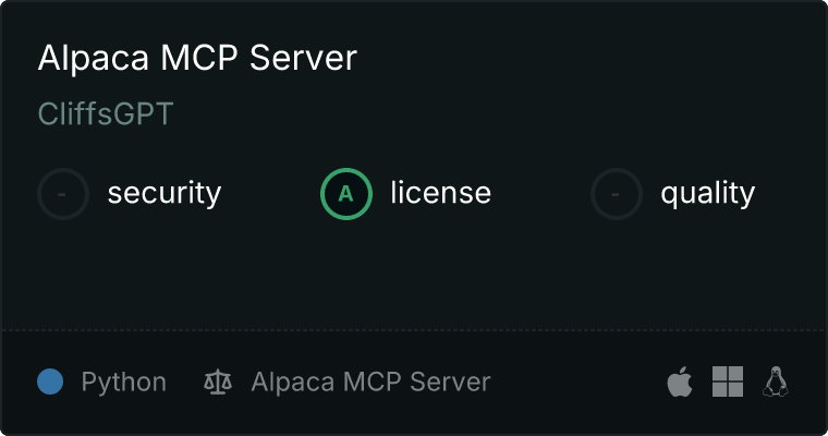 curl -X GET 'https://glama.ai/api/mcp/v1/servers/CliffsGPT/Alpaca-MCP-Clone'