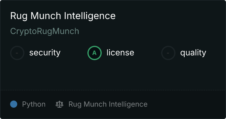 curl -X GET 'https://glama.ai/api/mcp/v1/servers/CryptoRugMunch/rug-munch-intelligence'