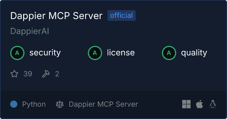 Our directory badge helps users to quickly assess server capabilities, safety, and instructions for installing the server.