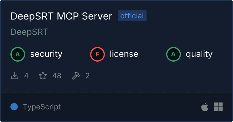 curl -X GET 'https://glama.ai/api/mcp/v1/servers/DeepSRT/deepsrt-mcp'