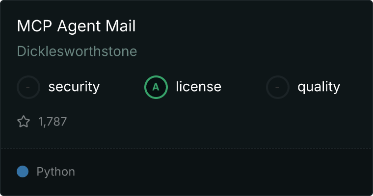 curl -X GET 'https://glama.ai/api/mcp/v1/servers/Dicklesworthstone/mcp_agent_mail'