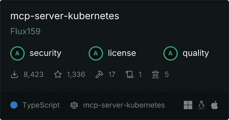 curl -X GET 'https://glama.ai/api/mcp/v1/servers/Flux159/mcp-server-kubernetes'