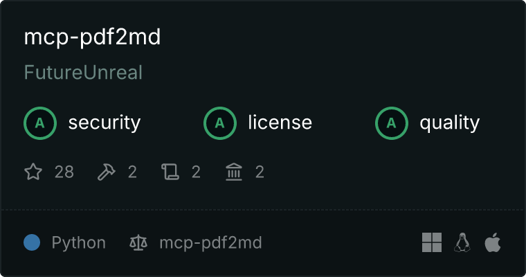 curl -X GET 'https://glama.ai/api/mcp/v1/servers/FutureUnreal/mcp-pdf2md'