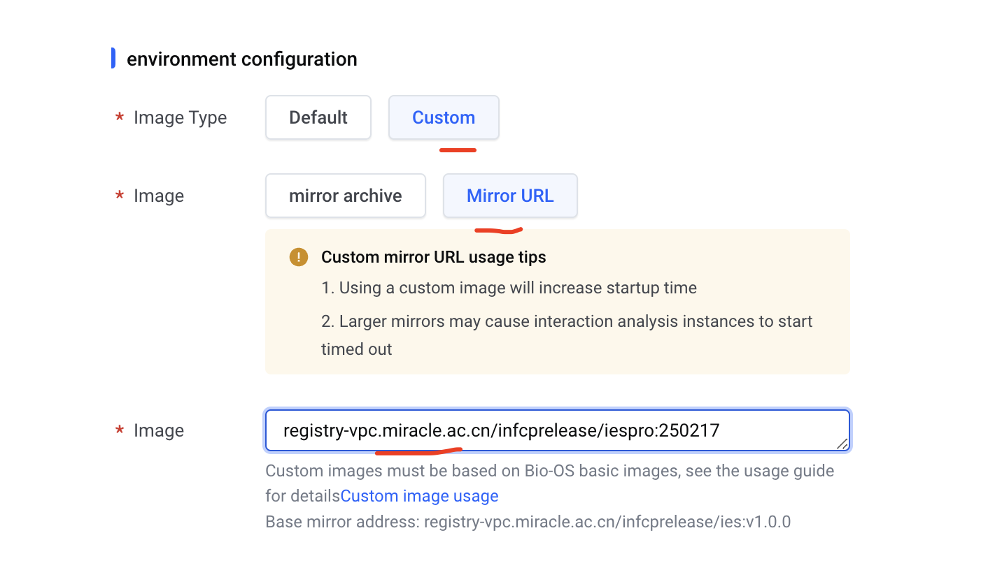 For Miracle Cloud users, we provide a pre-configured Docker image with all Bio-OS MCP Server dependencies. Follow these steps: