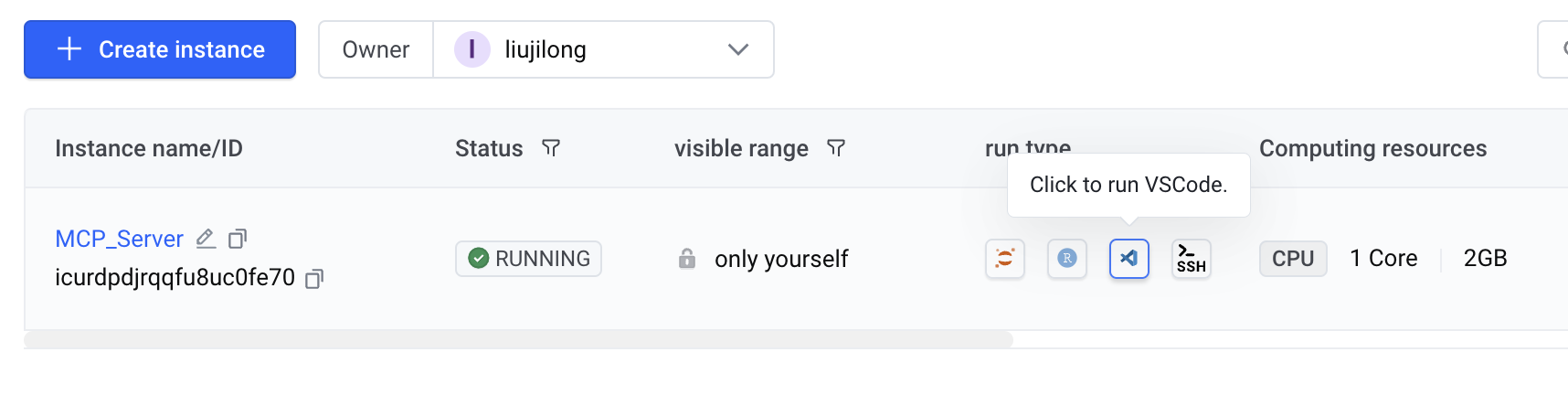 registry-vpc.miracle.ac.cn/infcprelease/iespro:250217Select "Open with VSCode" to access the development environment: