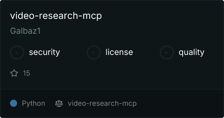 curl -X GET 'https://glama.ai/api/mcp/v1/servers/Galbaz1/video-research-mcp'