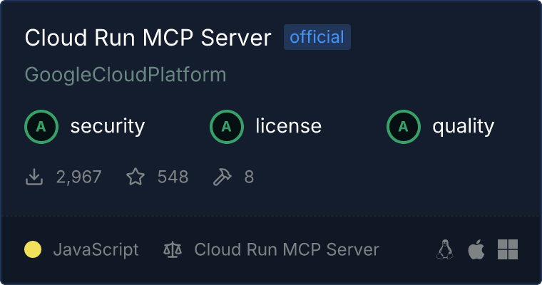 curl -X GET 'https://glama.ai/api/mcp/v1/servers/GoogleCloudPlatform/cloud-run-mcp'