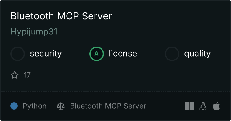 curl -X GET 'https://glama.ai/api/mcp/v1/servers/Hypijump31/bluetooth-mcp-server'