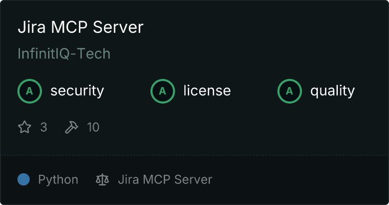 curl -X GET 'https://glama.ai/api/mcp/v1/servers/InfinitIQ-Tech/mcp-jira'