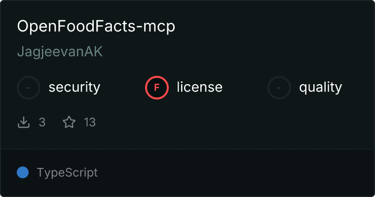 curl -X GET 'https://glama.ai/api/mcp/v1/servers/JagjeevanAK/OpenFoodFacts-MCP'
