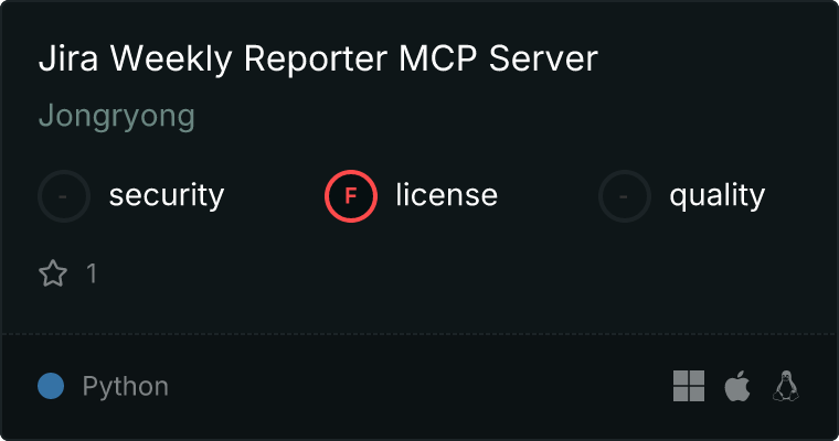 curl -X GET 'https://glama.ai/api/mcp/v1/servers/Jongryong/jira_reporter'