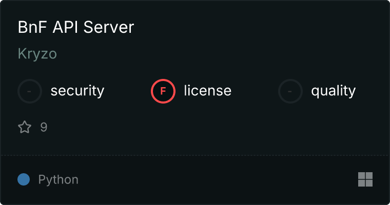 curl -X GET 'https://glama.ai/api/mcp/v1/servers/Kryzo/mcp-bibliotheque_nationale_de_France'
