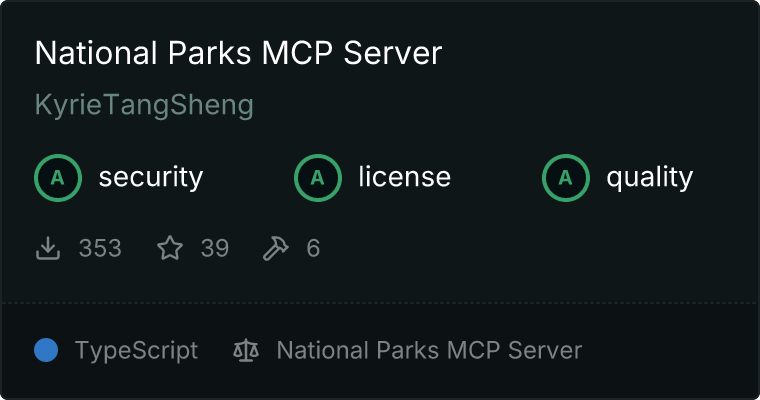 curl -X GET 'https://glama.ai/api/mcp/v1/servers/KyrieTangSheng/mcp-server-nationalparks'