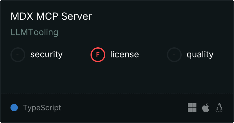 curl -X GET 'https://glama.ai/api/mcp/v1/servers/LLMTooling/mdx-mcp-server'