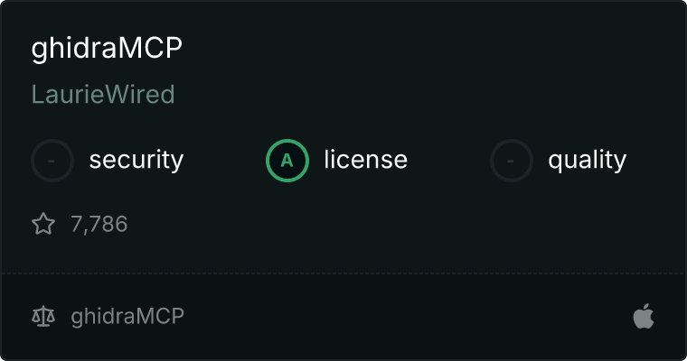 curl -X GET 'https://glama.ai/api/mcp/v1/servers/LaurieWired/GhidraMCP'