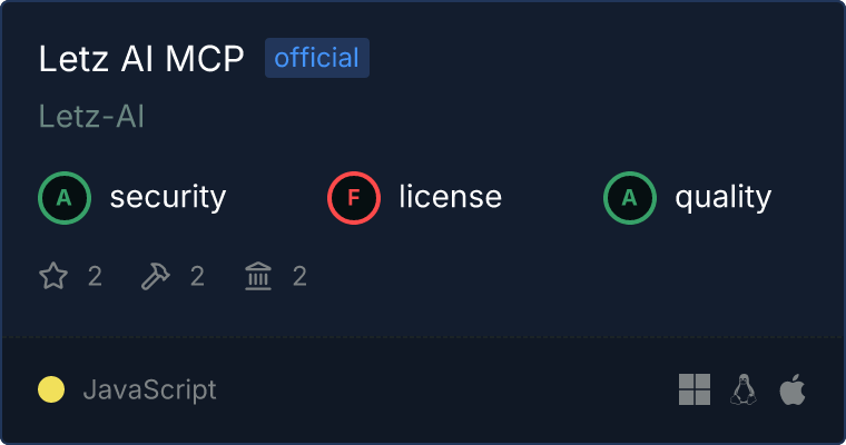 curl -X GET 'https://glama.ai/api/mcp/v1/servers/Letz-AI/letzai-mcp'