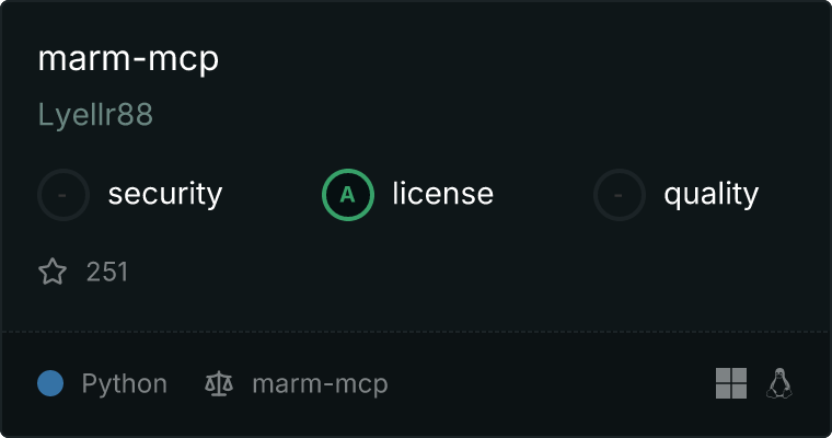 curl -X GET 'https://glama.ai/api/mcp/v1/servers/Lyellr88/marm-mcp'