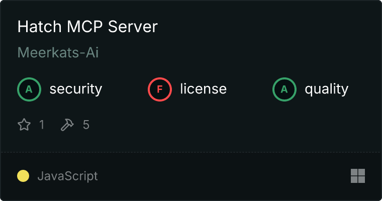 curl -X GET 'https://glama.ai/api/mcp/v1/servers/Meerkats-Ai/hatch-mcp-server'
