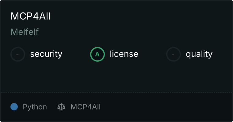curl -X GET 'https://glama.ai/api/mcp/v1/servers/Melfelf/MCP4All'