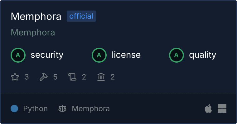 Our directory badge helps users to quickly assess server capabilities, safety, and instructions for installing the server.