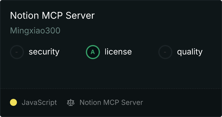 curl -X GET 'https://glama.ai/api/mcp/v1/servers/Mingxiao300/Notion-MCP-Server-Smithery'
