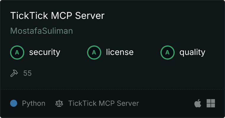 Our directory badge helps users to quickly assess server capabilities, safety, and instructions for installing the server.