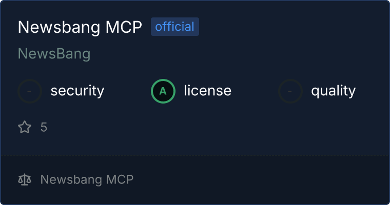 curl -X GET 'https://glama.ai/api/mcp/v1/servers/NewsBang/newsbang-mcp'