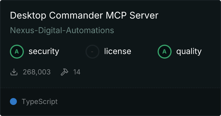 Our directory badge helps users to quickly assess server capabilities, safety, and instructions for installing the server.