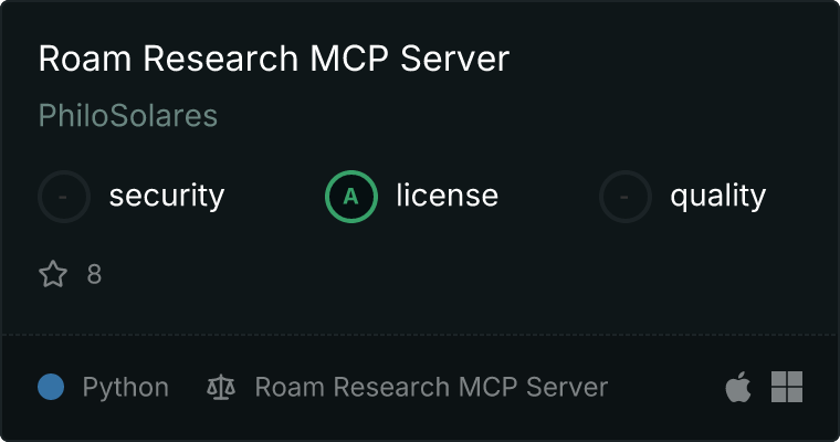 curl -X GET 'https://glama.ai/api/mcp/v1/servers/PhiloSolares/roam-mcp'