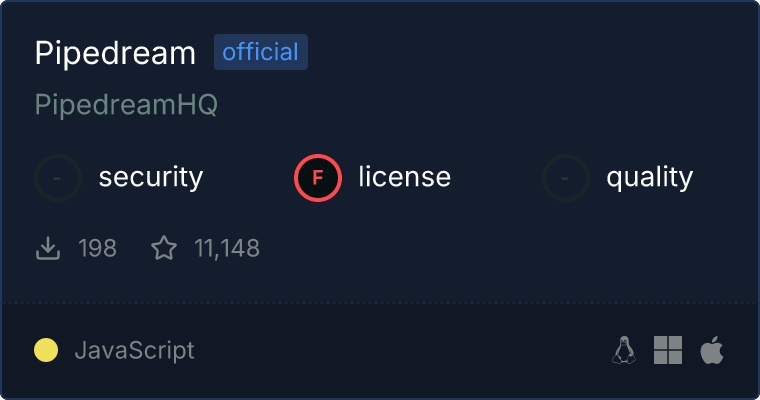 curl -X GET 'https://glama.ai/api/mcp/v1/servers/PipedreamHQ/pipedream'