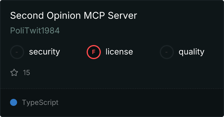 curl -X GET 'https://glama.ai/api/mcp/v1/servers/PoliTwit1984/second-opinion-mcp-server'