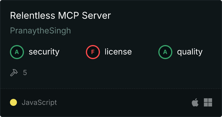 curl -X GET 'https://glama.ai/api/mcp/v1/servers/PranaytheSingh/relentless-mcp'