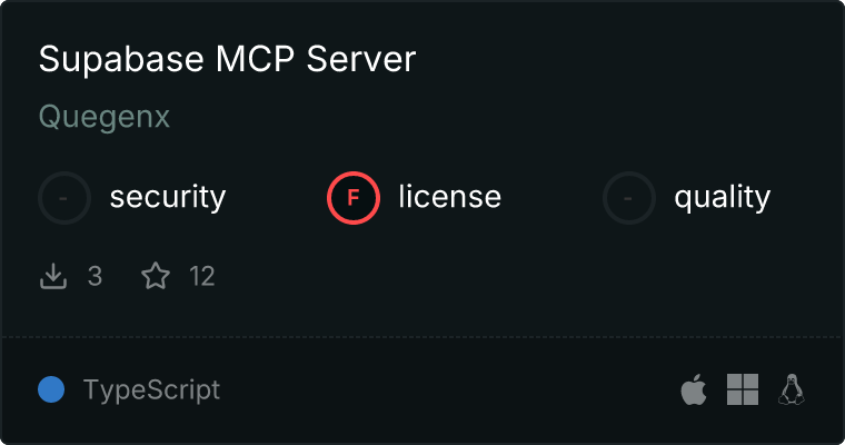 curl -X GET 'https://glama.ai/api/mcp/v1/servers/Quegenx/supabase-mcp-server'