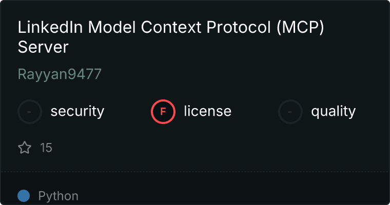 curl -X GET 'https://glama.ai/api/mcp/v1/servers/Rayyan9477/linkedin_mcp'