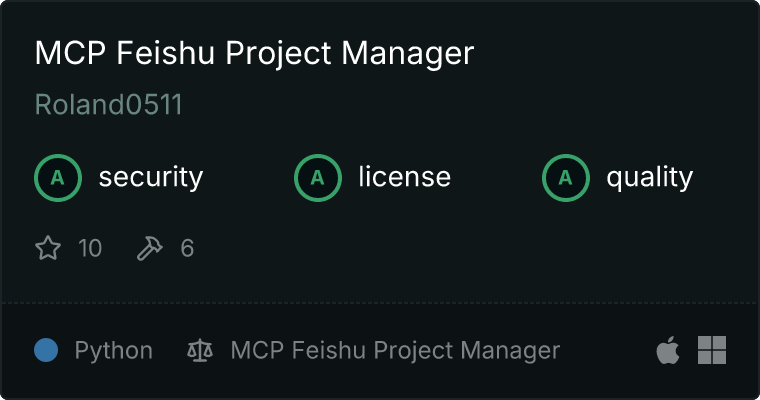 curl -X GET 'https://glama.ai/api/mcp/v1/servers/Roland0511/mcp-feishu-proj'