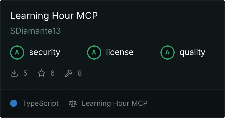 curl -X GET 'https://glama.ai/api/mcp/v1/servers/SDiamante13/learning-hour-mcp'