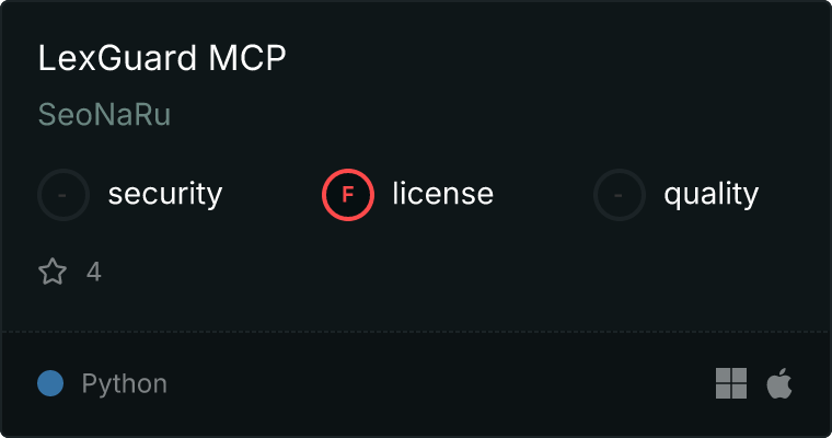 curl -X GET 'https://glama.ai/api/mcp/v1/servers/SeoNaRu/lexguard-mcp'