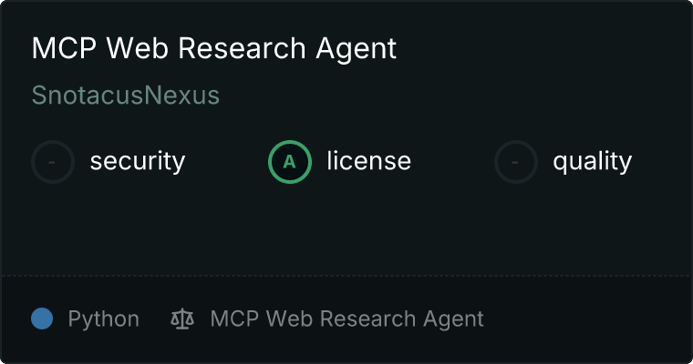 curl -X GET 'https://glama.ai/api/mcp/v1/servers/SnotacusNexus/mcp-web-research-agent'
