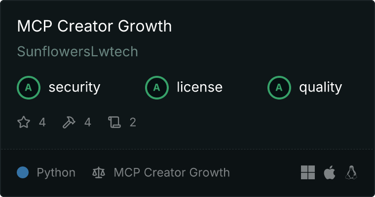 curl -X GET 'https://glama.ai/api/mcp/v1/servers/SunflowersLwtech/mcp_creator_growth'