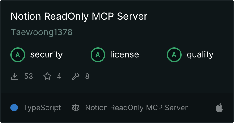 curl -X GET 'https://glama.ai/api/mcp/v1/servers/Taewoong1378/notion-readonly-mcp-server'