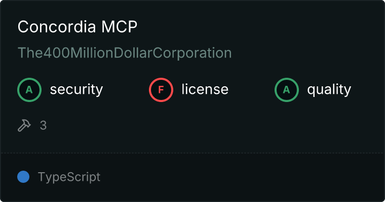 curl -X GET 'https://glama.ai/api/mcp/v1/servers/The400MillionDollarCorporation/Concordia-MCP'