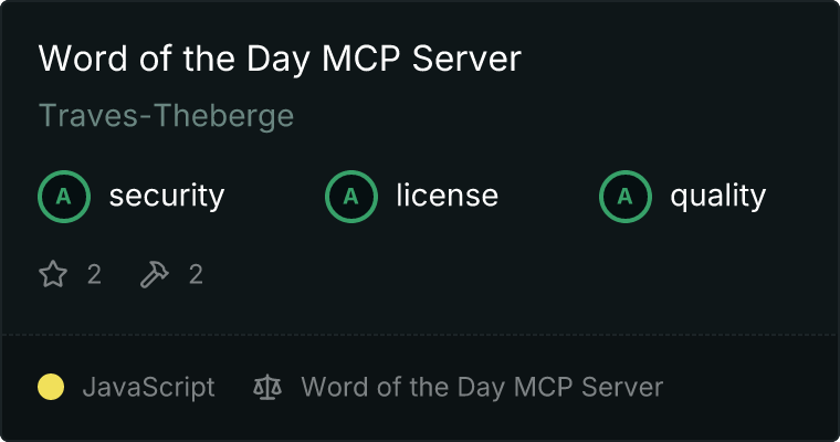 curl -X GET 'https://glama.ai/api/mcp/v1/servers/Traves-Theberge/Word_of_the_day'