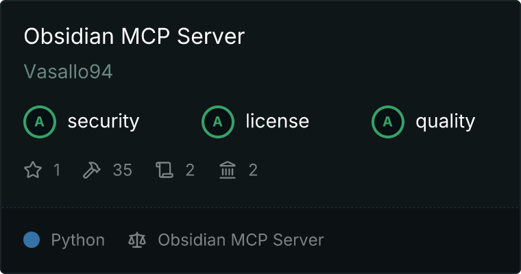 curl -X GET 'https://glama.ai/api/mcp/v1/servers/Vasallo94/obsidian-mcp-server'