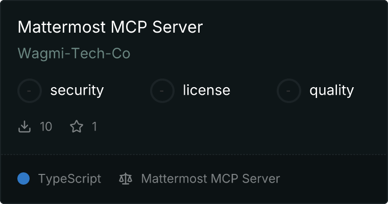 curl -X GET 'https://glama.ai/api/mcp/v1/servers/Wagmi-Tech-Co/mcp-mattermost'