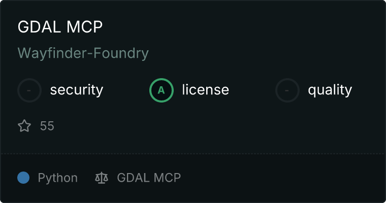 curl -X GET 'https://glama.ai/api/mcp/v1/servers/Wayfinder-Foundry/gdal-mcp'