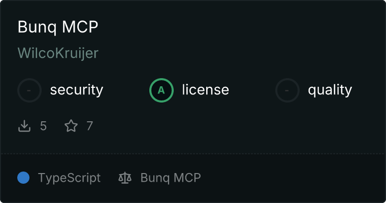curl -X GET 'https://glama.ai/api/mcp/v1/servers/WilcoKruijer/bunq-mcp'