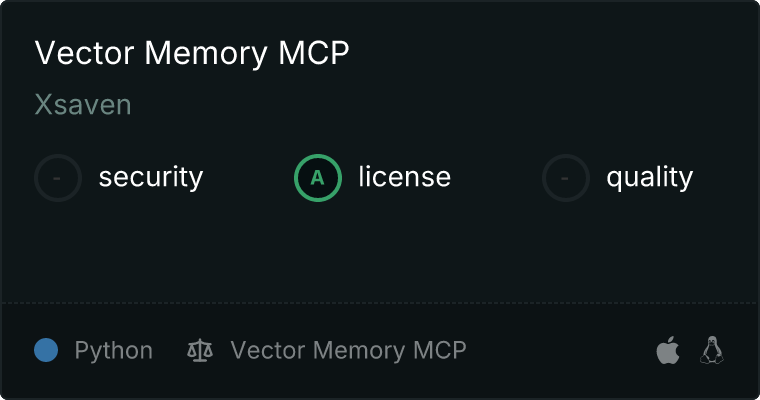 curl -X GET 'https://glama.ai/api/mcp/v1/servers/Xsaven/vector-memory-mcp'